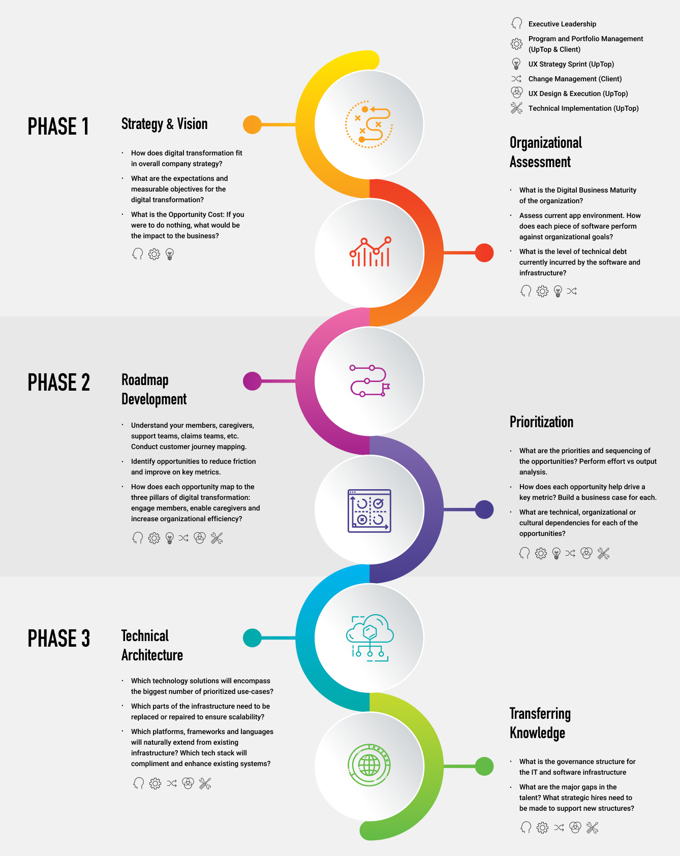 At UpTop, we help organizations plan and execute digital transformation initiatives that move the needle—whether that’s designing better customer portals, modernizing backend systems, or optimizing internal tools. Let’s talk about where your journey should begin.